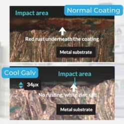 Cool Galv Aerosol is a convenient zinc-rich cold galvanising spray designed for quick anti-corrosion touch-ups and small-area protection. It provides a sacrificial zinc layer that helps prevent rust formation on exposed steel and welded joints.